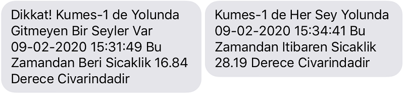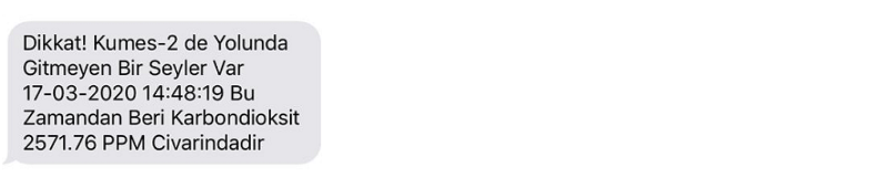 2. Sistem kümeslerdeki karbondioksit değerlerini takip edecek ve istenilen aralık dışındaki tüm karbondioksit değerlerini SMS (kısa mesaj) ve Çağrı Gönderme yoluyla bildirecek. Karbondioksit normal değerlerine dönmediği sürecek periyodik olarak SMS (kısa mesaj) iletileri ve Çağrı göndermeye devam edecek, karbondioksit normal değerlerine döndüğü an her şeyin normale döndüğüne dair SMS iletisi ve Çağrı gönderecektir.