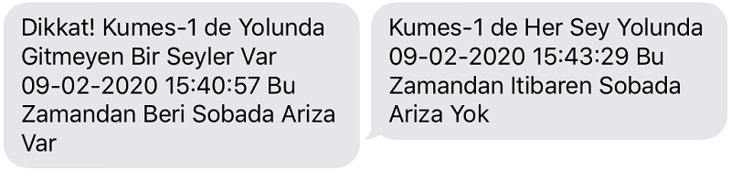 3. Sistem fan, soba arızalarını takip edecek ve fan, sobada oluşacak arızayı SMS (kısa mesaj) ve Çağrı gönderme yoluyla bildirecektir. Fan ya da sobadaki arıza giderilmediği sürece periyodik olarak SMS (kısa mesaj) iletileri ve Çağrı göndermeye devam edecek, fan ve sobadaki arıza giderildiği an her şeyin normale döndüğüne dair SMS iletisi ve Çağrı gönderecektir.